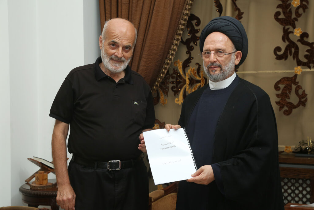 استقبل البروفسور رضا الَّذي سلَّمه نسخةً عن بحثه العلميّ حول ظاهرة المثليّة فضل الله: لتوعية المجتمع وتحصينه أمام الانحرافات الفكريَّة والأخلاقيَّة