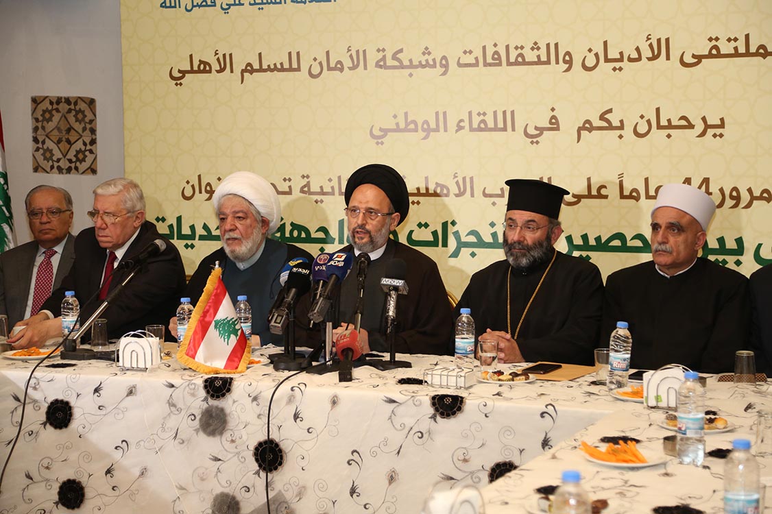 برعاية العلامة السيد علي فضل الله، نظَّم "اللقاء التشاوري لملتقى الأديان والثقافات" و"شبكة الأمان للسلم الأهلي"، لقاء وطنياً جامعاً بعنوان "المشهد اللبناني بين تحصين المنجزات ومواجهة التحديات"، في قرية الساحة التراثية – طريق المطار، وذلك لمناسبة 44 عاماً على اندلاع الحرب الأهلية اللبنانية.