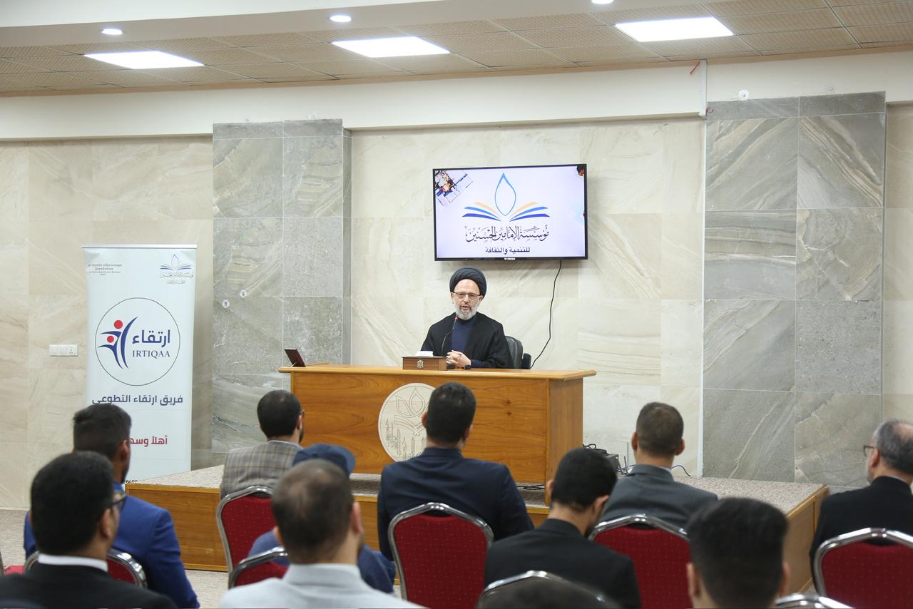 استُهلّ اللقاء بكلمة ترحيبية لمدير المركز الإسلامي الثقافي في النجف، الدكتور حيدر السعبري، الذي عرض طبيعة عمل فريق ارتقاء التطوعي وأهدافه.