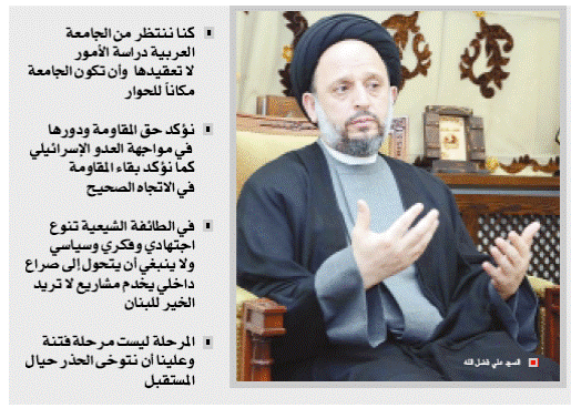 حوار شامل مع وريث مدرسة الإعتدال حول الفتنة وتداعيات الأزمة السورية السيد علي فضل الله لـ«اللواء»: مَنْ يُرسل المقاتلين إلى سوريا عليه أنْ يتدبّر العواقب على اللبنانيّين أنْ …